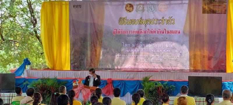 description พิธีมอบสมุดประจำตัว ผู้ได้รับการคัดเลือกให้ทำกินในชุมชน ตามนโยบายรัฐบาล (คทช.) โดย นายนิพนธ์ บุญญาณี รัฐมนตรีช่วยว่าการกระทรวงมหาดไทย พื้นที่เขตป่าสงวนแห่งชาติ "ป่าดงผาลาด" วันที่ 28 มีนาคม 2565 ณ โรงเรียนท่าศรีไคล person admin