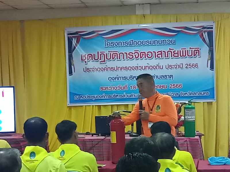description วัตถุประสงค์ 1.เพื่อเสริมสร้างศักยภาพและความเข้มแข็งภายในองค์การบริหารส่วนตำบลธาตุ โดยจัดให้มีบุคลากรที่สามารถปฏิบัติหน้าที่ช่วยเหลือเจ้าพนักงานในการป้องกันและบรรเทาสาธารณะภัยได้อย่างมีประสิทธิภาพ 2.เพื่อส่งเสริมความรู้ด้านการจัดการสาธารณภัยเบื้องต้น ระบบบัญชาการเหตุการณ์ การควบคุมสั่งการ การบริหารจัดการสาธารณภัยในพื้นที่เกิดเหตุที่เป็นรูปแบบและมีมาตรฐานเดียวกัน ให้กับชุดปฏิบัติการจิตอาสาภัยพิบัติประจำองค์การบริหารส่วนตำบลธาตุ 3.เพื่อพัฒนาระบบการปฎิบัติงานกู้ภัยในภาวะฉุกเฉินให้เป็นระบบรวดเร็วและทันต่อเหตุการณ์ 4.เพื่อสนับสนุนให้โครงการจิตอาสาพระราชทาน 904 วปร. ในระดับพื้นที่ให้มีความเข้มแข็งและมีทักษะความรู้ ความชำนาญในการจัดการภัยพิบัติ อันจะส่งผลให้ประชาชนในชุมชนหรือท้องถิ่นมีความปลอดภัยในชีวิตและทรัพย์สิน โดยมีผู้เข้ารับการฝึกอบรมทบทวนชุดปฏิบัติการจิตอาสาภัยพิบัติประจำองค์กรปกครองส่วนท้องถิ่นในครั้งนี้จำนวน 50 คน ได้รับการสนับสนุนวิทยากรจาก ศูนย์ป้องกันและบรรเทาสาหน้าภัยเขต 7 สกลนคร และสถานีตำรวจภูธร อำเภอวานรนิวาส ระยะเวลาจัดโครงการ ตั้งแต่วันที่ 18 - 19 กันยายน 2566 person admin