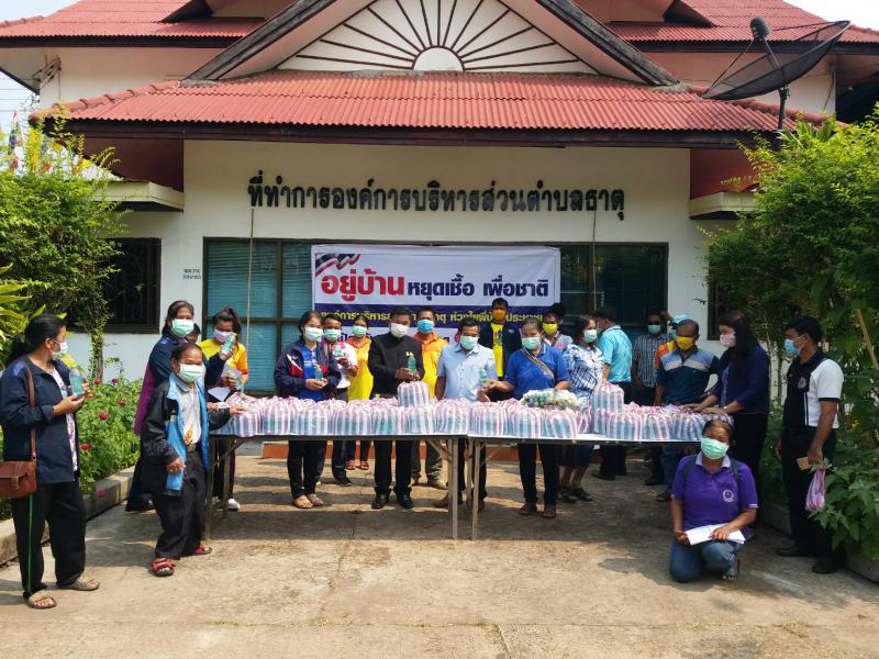 องค์การบริหารส่วนตำบลธาตุ ร่วมกับ อบจ.สกลนคร แจกเจลแอลกอฮอล์ให้กับประชาชน