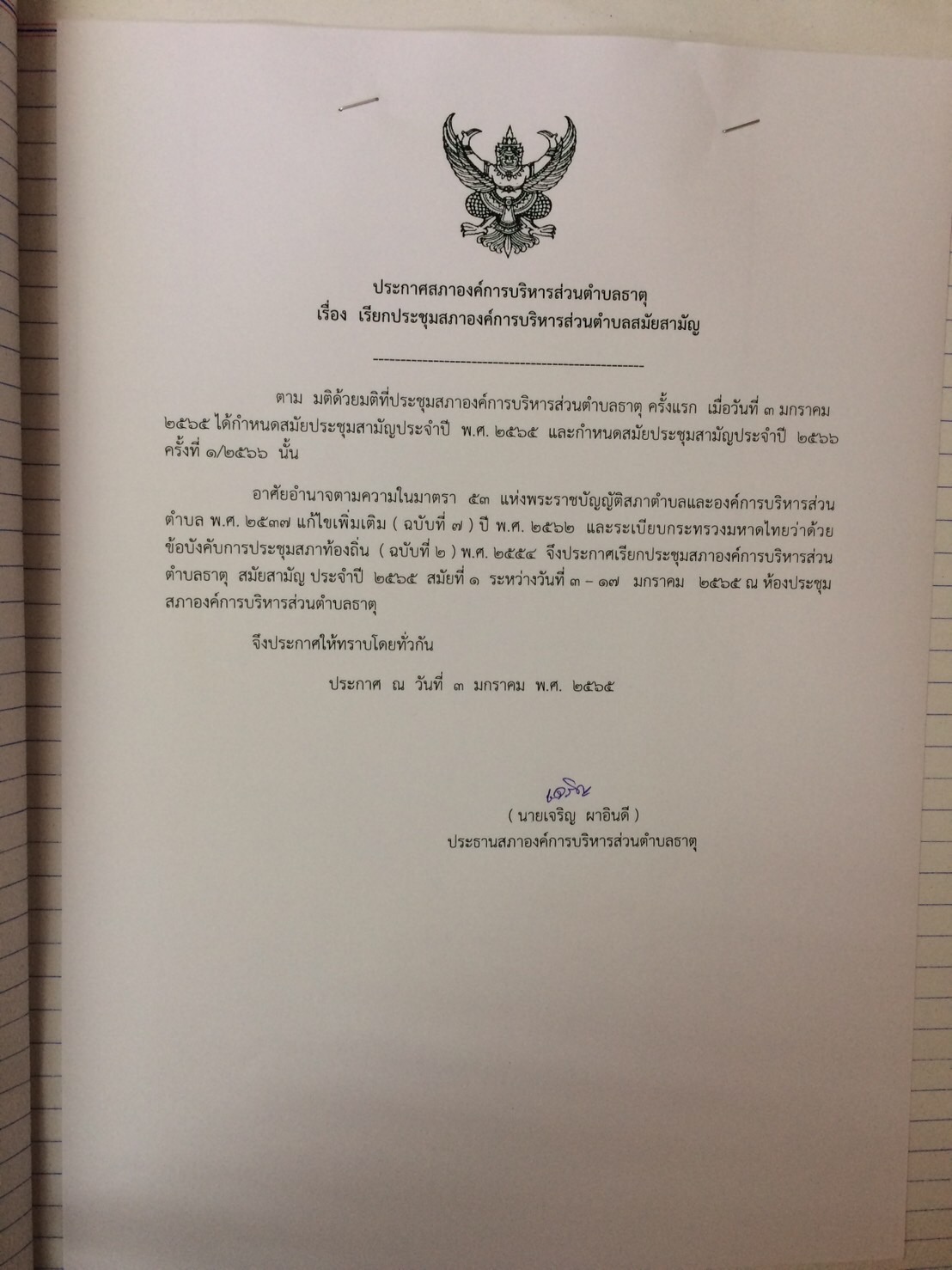 ประกาศเรียกประชุมสภา สมัยที่ 1/2565