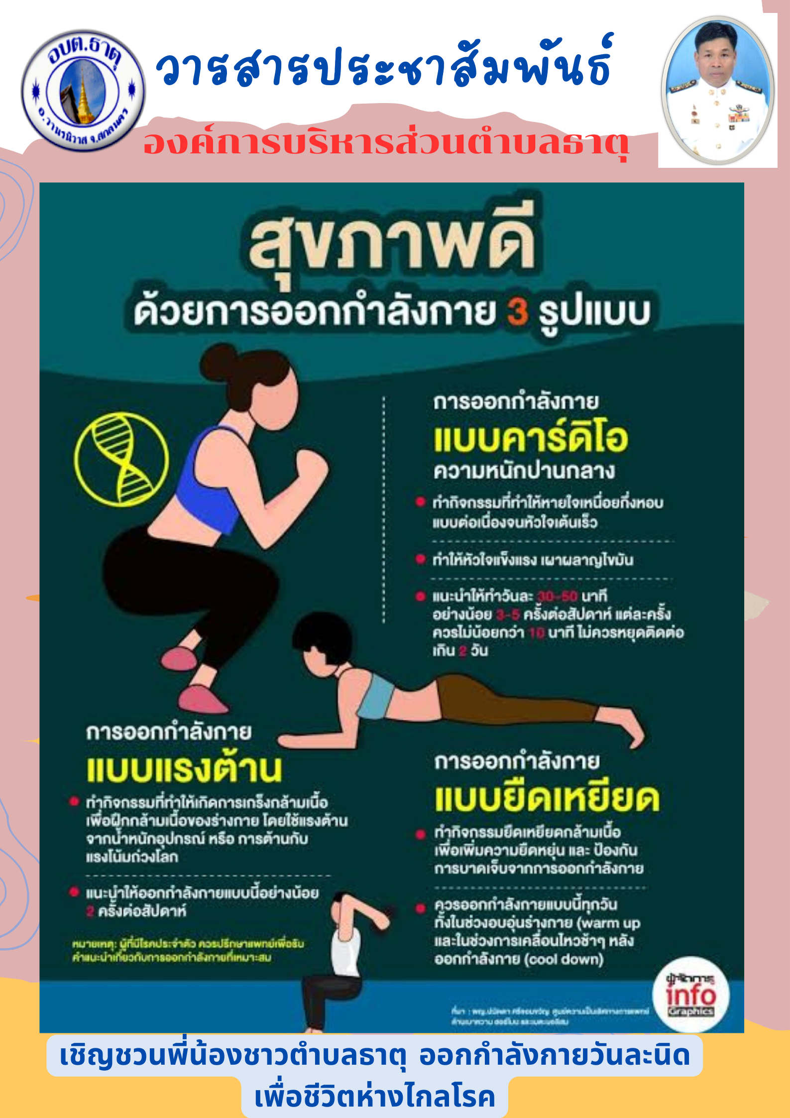 เชิญชวนพี่น้องชาวตำบลธาตุออกกำลังกายเพื่อสุขภาพ