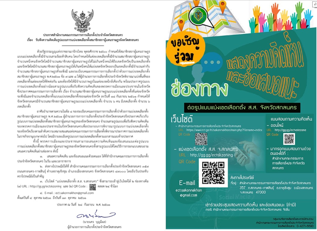 ประกาศสำนักงานคณะกรรมการการเลือกตั้งจังหวัดสกลนคร