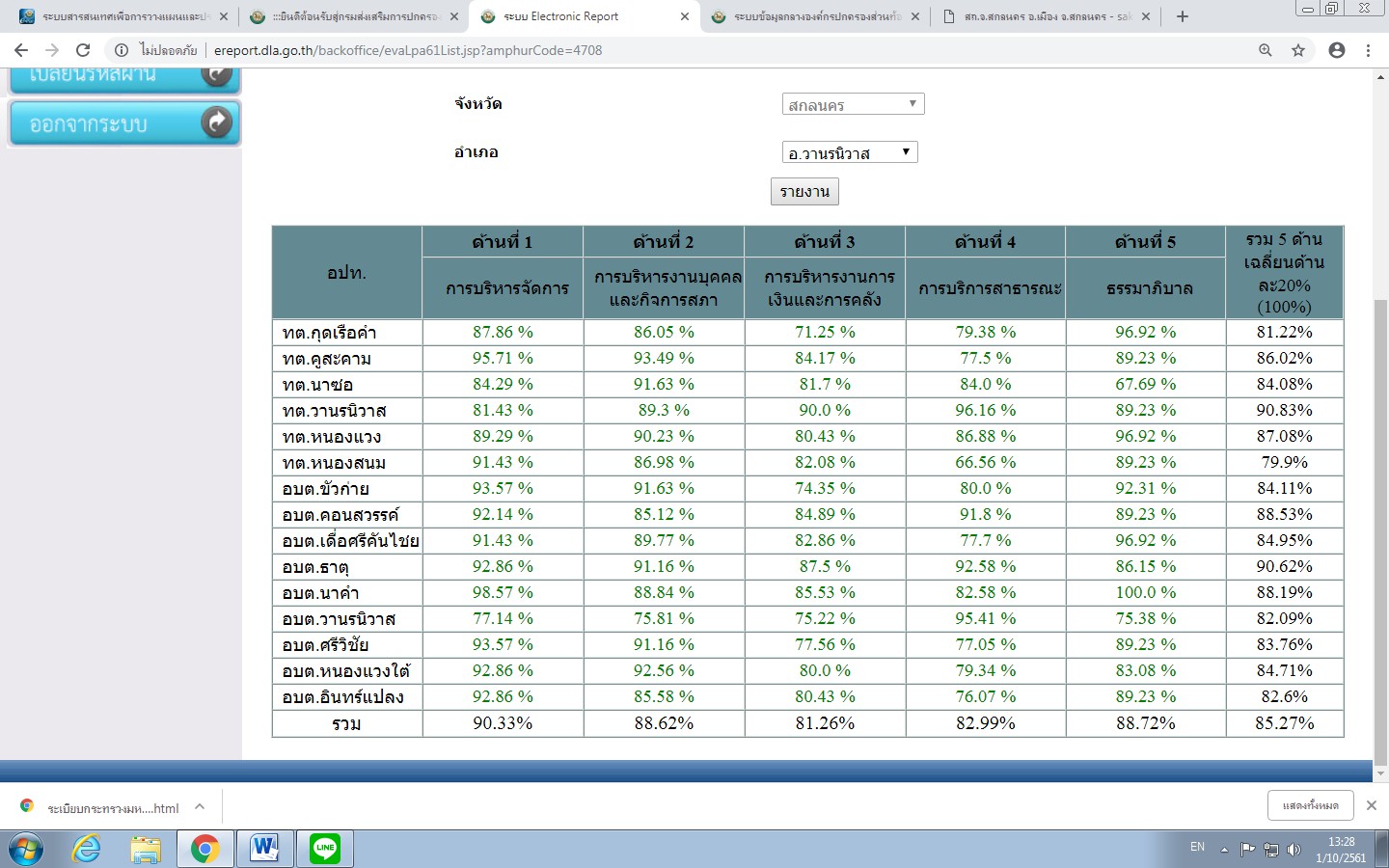 ผลการประเมินการปฏิบัติราชการขององค์การบริหารส่วนตำบลธาตุ